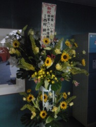7/1の県民ホール寄席「林家たい平独演会」に販売に入らせていただきました。立派な花が届いておりました。時期もありましょうが、最近このようにひまわりを入れるのが流行っているみたいですね。
