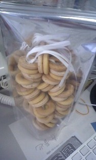 リング状のカンパンをおしゃれにリボンで通してあるのですが