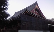 龍の描かれた工事用幕が外された浅草寺。