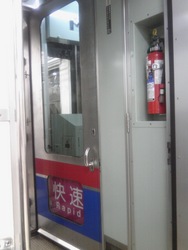 先頭車両同士の連結部分では、行き来ができない経験しかなかったので新鮮で写真を撮ってしまいました。快速のプレートが萌えます(萌えってこういう時に使うのでしょうか)。