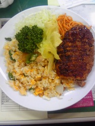 キッチン柳のピラフ(洋風エビチャーハンのようなもの)&メンチカツ。