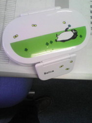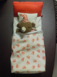 何だと思いますか?実は、ティッシュボックスカバーです。ちらりと見えている白いものがティッシュです。くま、よく眠ってますね。蒸し蒸ししてて寝苦しい夜が続きますが、冷房を入れすぎて体壊さないようにしましょう。今週もあと、4日ですから。