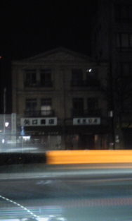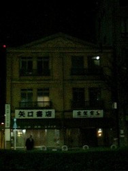 写真1 前回のたや。日記にでてきた矢口書店。車が通り過ぎる瞬間をパチリ。