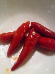 写真3 一杯のラーメンに入っていたとんがらし。かなり痛かったのですが、この写真は辛みを感じませんねえ。