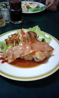 続いて人形町・芳味亭のチキンソテー、向かいの友人はカキグラタン