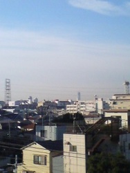 家のベランダからスカイツリーを望んで。